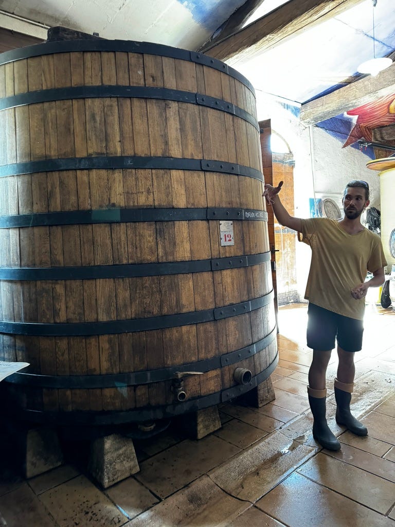 Above: Our guide explaining how carbonic maceration works while standing aside a fermentation barrel at Domaine Marcel Lapierre